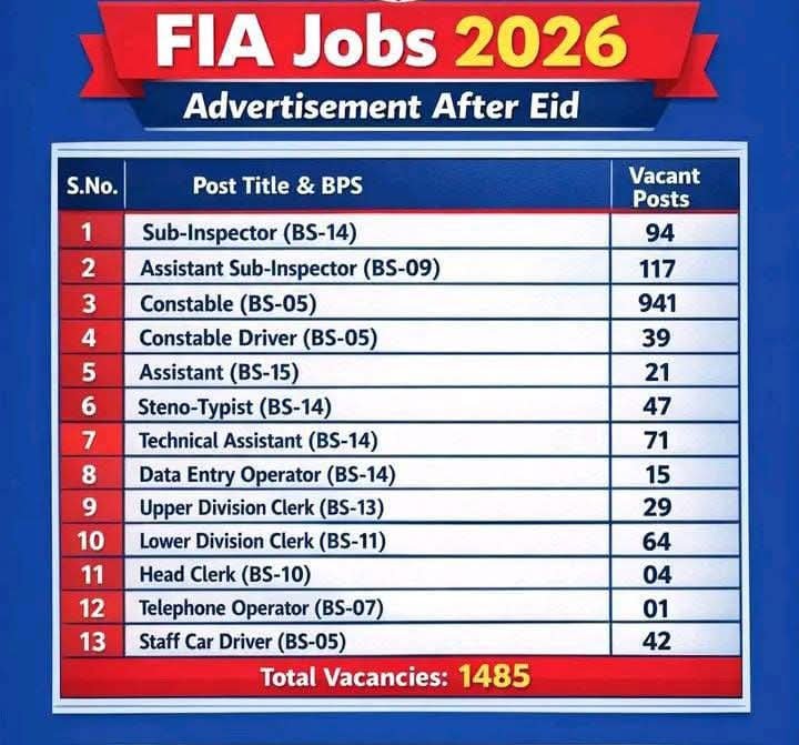 The official FIA Jobs 2026 Advertisement has been published through national newspapers and government job portals. According to the announcement, candidates from all provinces including Punjab, Sindh, Khyber Pakhtunkhwa, Balochistan, and Azad Kashmir can apply for various posts.